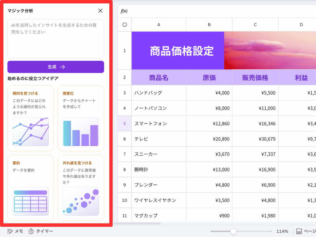 Canva AIは無料で使用できます。Canvaユーザーであれば、誰でも使うことができるコンテンツです