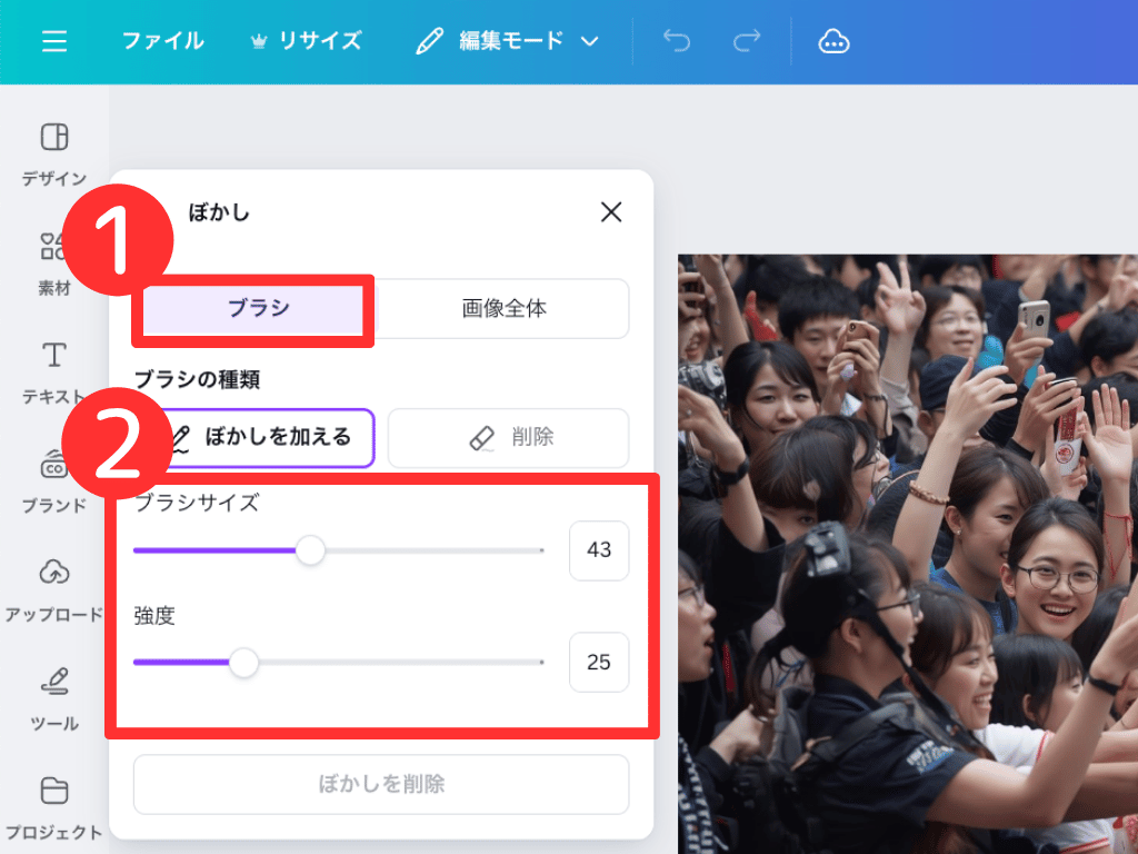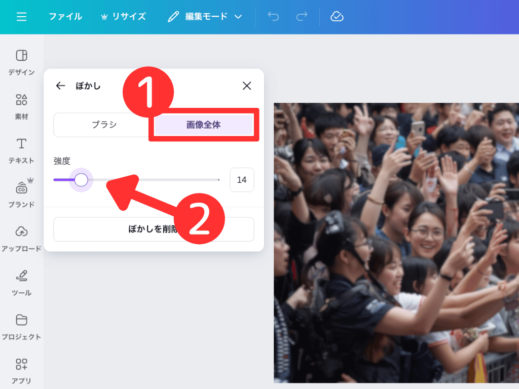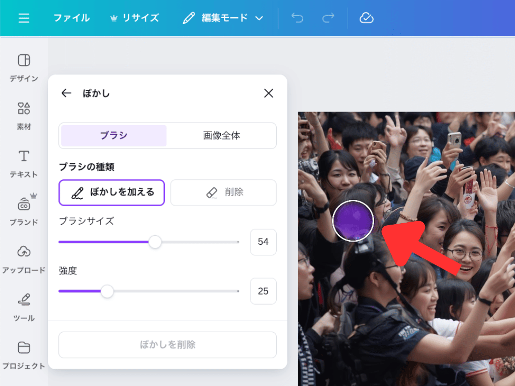 今は使えないけど、まずはCanvaのぼかし機能を使ってみてね!