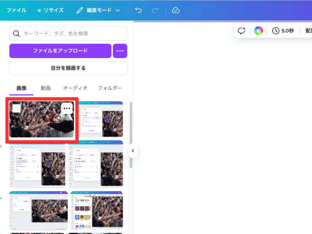 まずは、スマホなどで撮影した写真をCanvaに取り込みましょう。