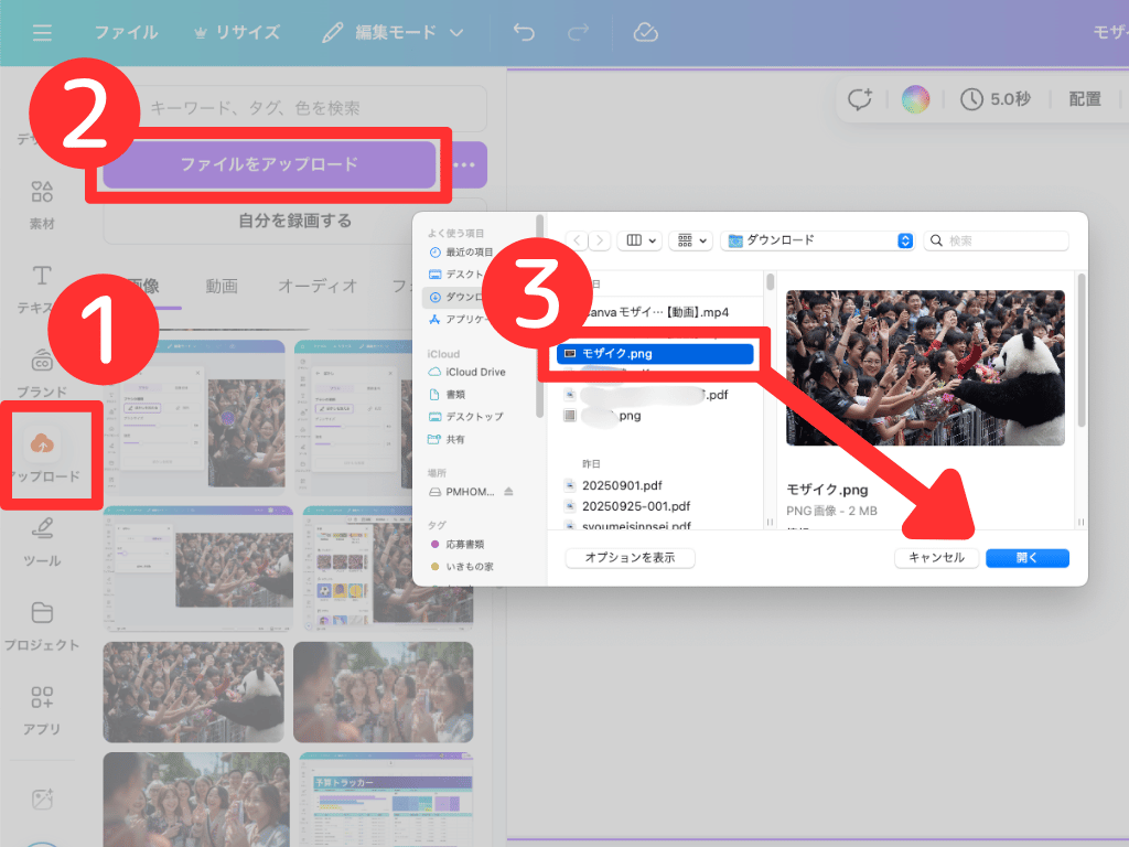 Canvaを使ったことがない人でも、下記の手順で簡単にモザイクをかけられます!