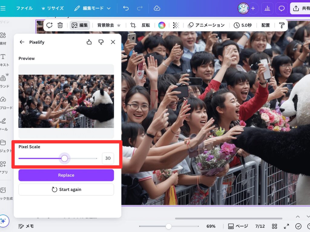 Canva ドット状モザイク pixelify