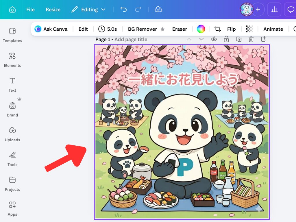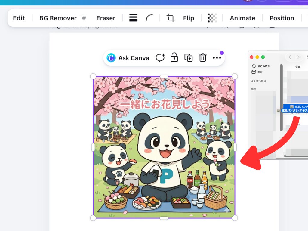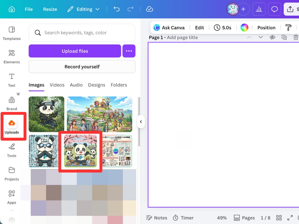 デザインを開いて、マジックレイヤーを適用したい画像をアップロードします。