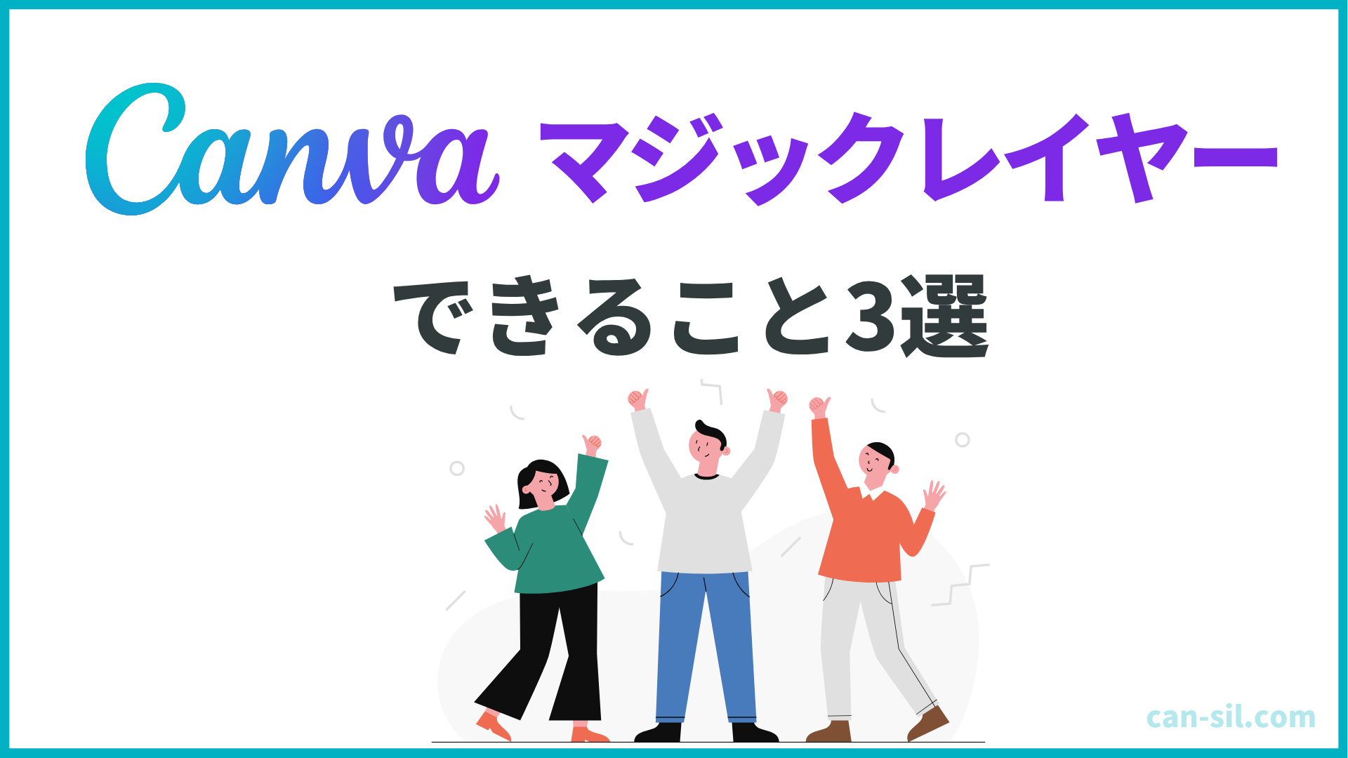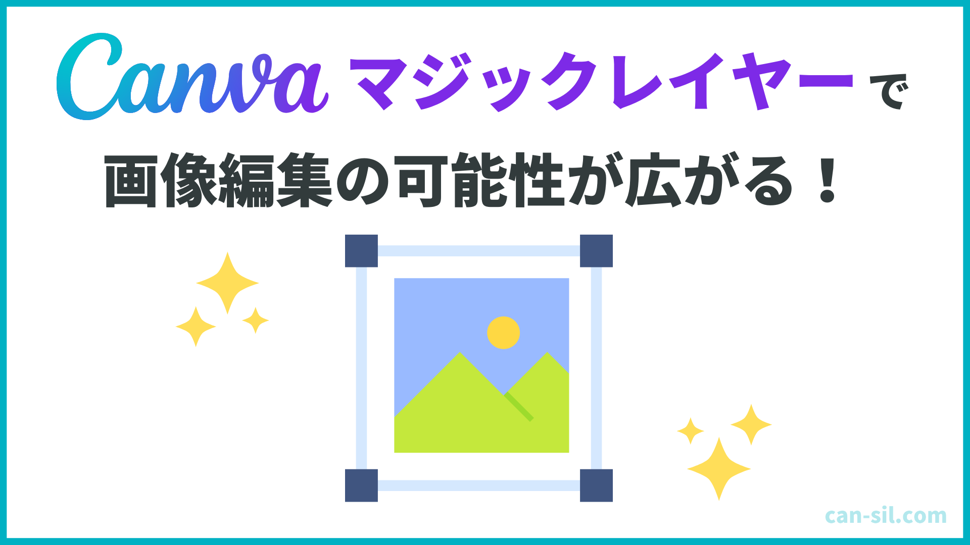 Cansil|Canvaを使ったデザイン初心者のための解説ブログ https://can-sil.com すべての人にデザインを! Thu, 23 Apr 2026 03:45:39 +0000 ja hourly 1 https://can-sil.com/wp-content/uploads/2021/10/cropped-logo-1-32x32.png Cansil|Canvaを使ったデザイン初心者のための解説ブログ https://can-sil.com 32 32 【AI画像を編集したい人必見】Canvaマジックレイヤーの使い方を徹底解説 https://can-sil.com/magic_layers/ https://can-sil.com/magic_layers/#respond Fri, 17 Apr 2026 22:04:49 +0000 https://can-sil.com/?p=6945