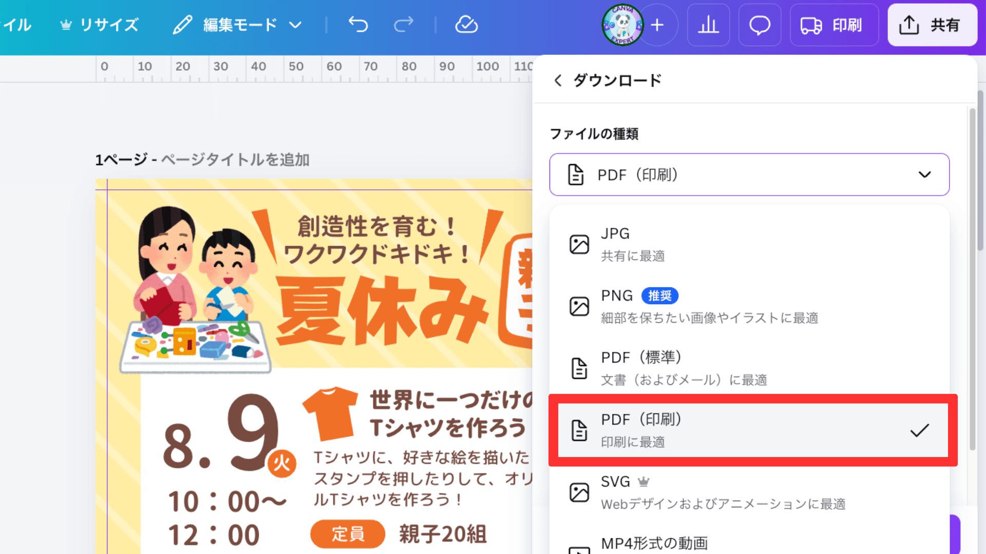 印刷を目的としてダウンロードするなら、基本的には「PDF(印刷)」がおすすめです。